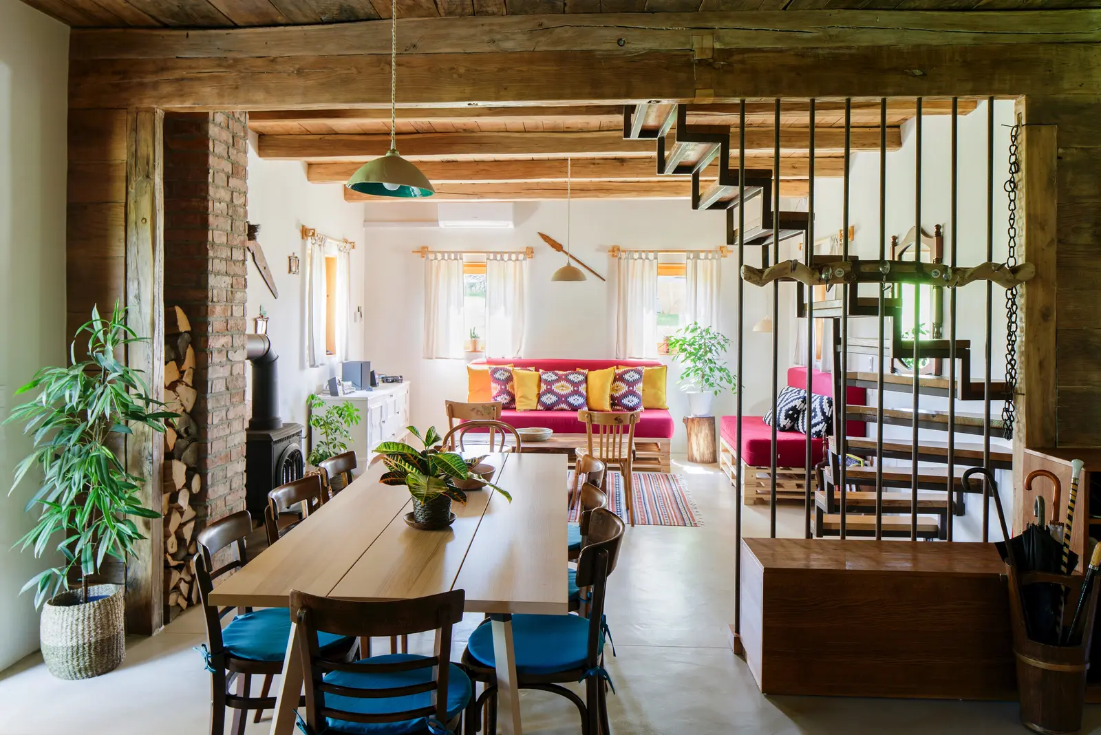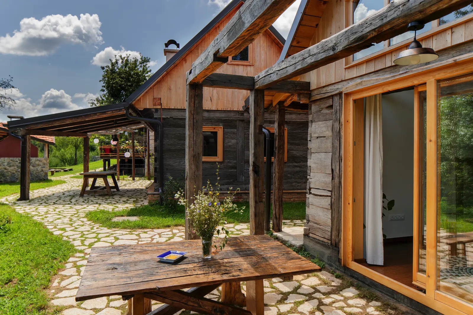 Området byder på 4 huse og værelserne er fordelt ud på de forskellige huse. Hovedhuset, hvor maden vil blive serveret er samtidig det primære co-work område.